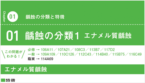 直近16年分(15年分+最新回)の一般問題・必修問題で出題された内容が「緑字」、重要な内容・用語が「太字」になっていて、押さえるべきところがひと目でわかります。また直近16年分の臨実問題についても対応を明記してあります。