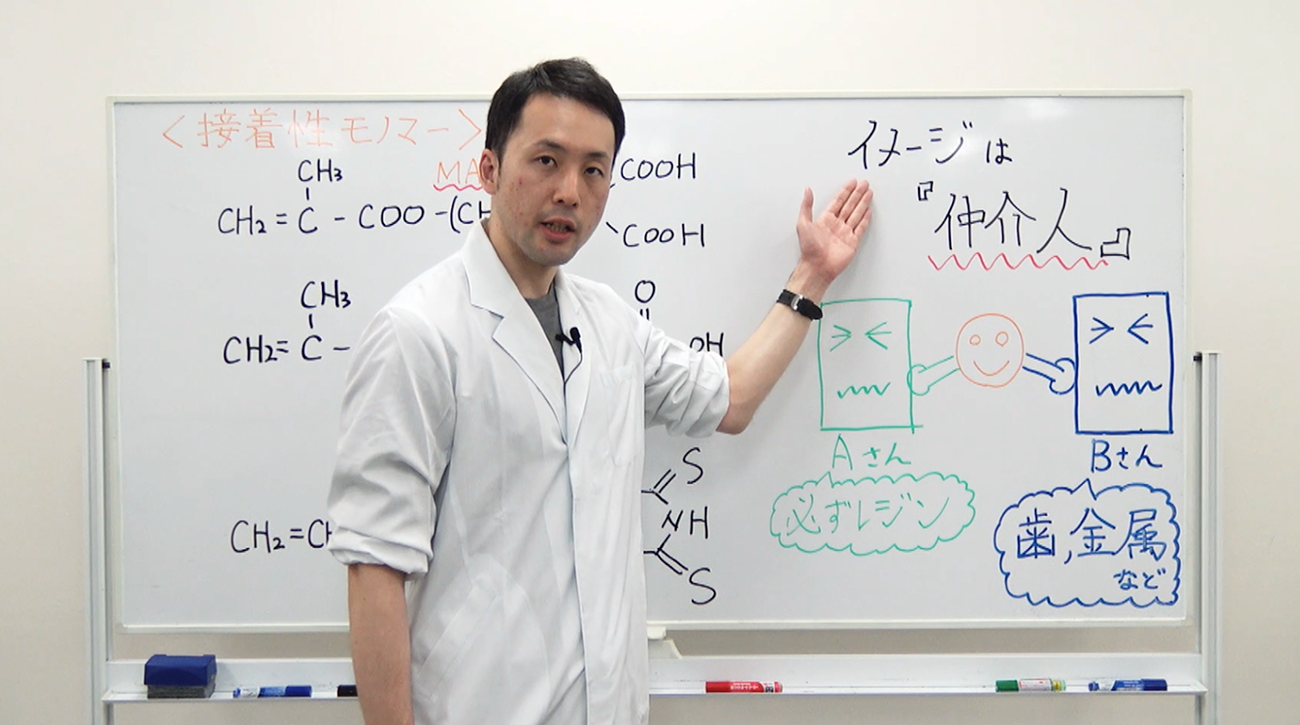 接着性モノマーの特徴や種類、構造式の読み方など、イメージを使って覚えやすく解説。実際の国試問題の解き方も分かりやすく説明しています。