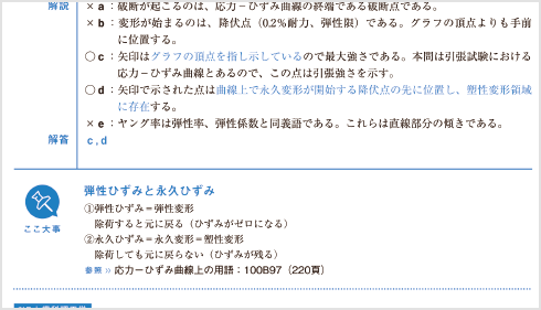 「ここ大事」解説は選択肢それぞれで正誤の理由や考え方を詳細に説明しています。また各問題には「ここ大事」などのまとめを記載してあり、必要な知識を身につけることができます。